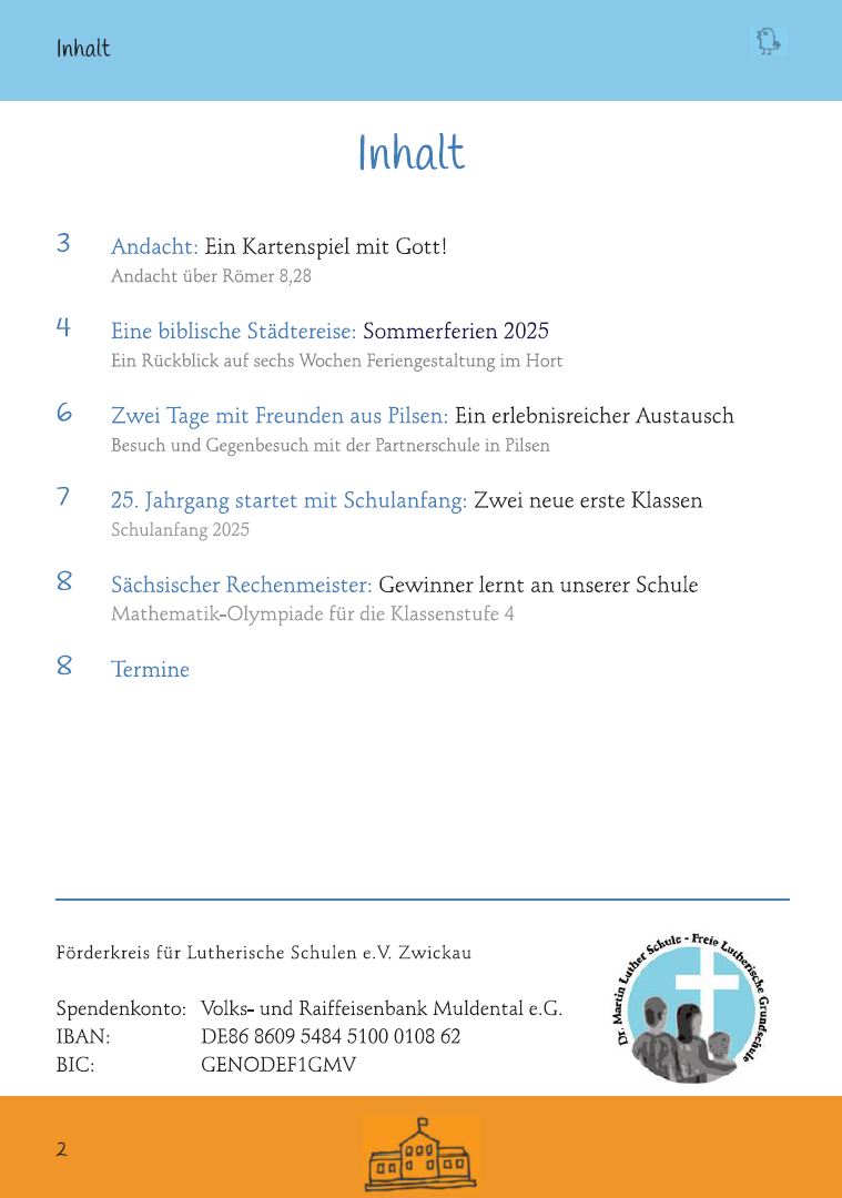 Die Schulinfo ist das Informationsheft des Förderkreises für Lutherische Schulen e.V. Sie erscheint als Beilage zu den "Lutherischen Gemeindebriefen" der Evangelisch-Lutherischen Freikirche viermal im Jahr. Die Schulinfo informiert über Entwicklungen in Schule und Hort, wichtige Veranstaltungen, Projekte und sportliche Ereignisse der MLS im vorangegangenen Quartal. Außerdem werden wichtige Termine über die Schulinfo bekannt gegeben.